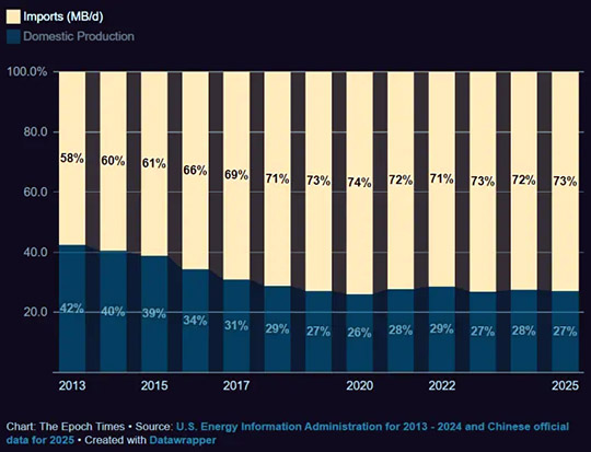 Le poids des importations de pétrole en Chine